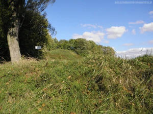 X-XI wieku i stożkowe z XIII- XIV wieku. Bryła młodszego grodziska to dość regularny stożek o podstawie zbliżonej do owalu o średnicy 45 m i powierzchni górnej o średnicy 15 m. Wypiętrzenie majdanu od powierzchni wysoczyzny wynosi około 10 m. Od strony zachodniej zachował się relikt fosy. Przeprowadzone na majdanie gródka archeologiczne badania poświadczają, iż obiekt był krótkotrwale zasiedlony w okresie późnośredniowiecznym. |