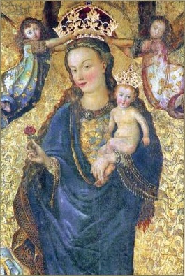 drugiej połowy XVII wieku z późnogotyckim obrazem "Matka Boża z Różą" w