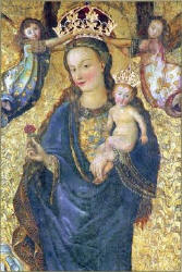 biskupów po bokach wizerunku Madonny, dwoma aniołami trzymającymi kielich