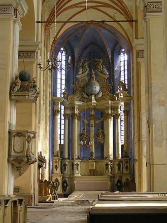 - ołtarz główny z pierwszej połowy XVII wieku (jego wysmukłość