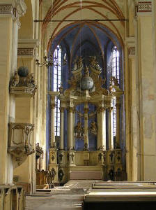 grubość w prezbiterium wynosi 1,5 m. Największą architektoniczną ozdobą