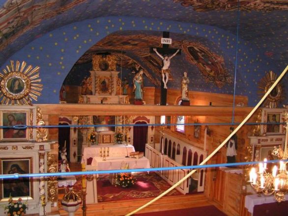 orientowana, drewniana, zbudowana w stylu późnego baroku w konstrukcji