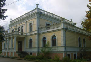 niedalekiej odległości od dworca kolejowego okazały pałac, otoczony