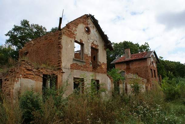znajdują się w starym, zdziczałym parku w północno-wschodniej części wsi