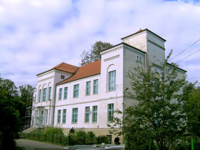 opuszczony; w 1948 r. adaptowano go na szkołę i do dziś, zarówno pałac jak