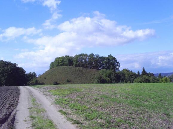 skręcić w stronę grodziska na zachód, jest oznaczone tabliczką