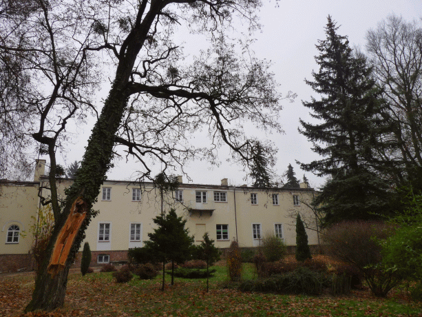 z dawnym ogrodem, od południa i północy - z dawnym sadem i polami