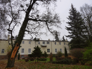oraz parter trawiasty z tyłu siedziby dworskiej. Wskazane dwa wnętrza