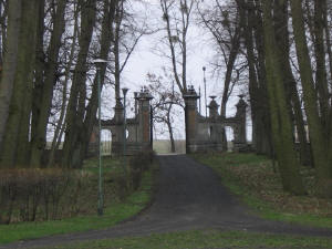 pagórki, skąd rozciąga się widok na pałac. Droga dojazdowa rozwidlała się
