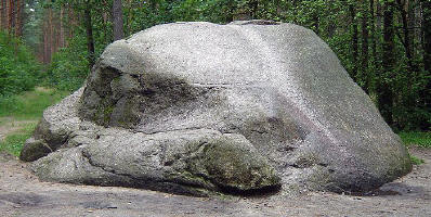 druga nazwa "Diabelski Kamień". Granitowy głaz jest pomnikiem przyrody nieożywionej o obwodzie 24,5 m, szerokości 8,8 m i wysokości 3,8 m. W wykazie zinwentaryzowanych pomników przyrody figuruje pod numerem 249. |
