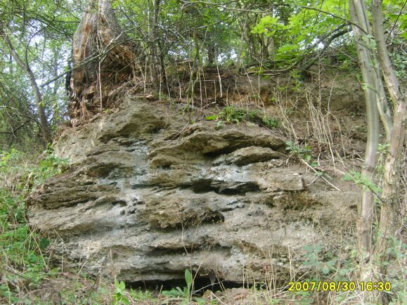 kierunku północnym. Zlepieniec znajduje się na stoku skarpy, którą mamy na