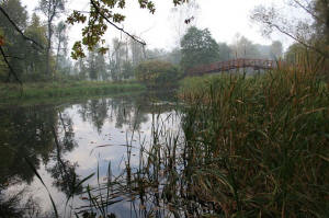 na torowisko tramwajów w związku z poszerzeniem ul. Bydgoskiej. Park położony jest na skarpie, w urozmaiconym, falistym terenie, odznacza się malowniczością. Charakteryzuje go powiązanie układów regularnych (klomby, kwietniki, sadzawka) z formami krajobrazowymi. Tworzą je swobodnie skupione grupy drzew, lasków i zagajników, rozmieszczone wśród otwartych zieleńców, a między nimi wiją się kręte, boczne ścieżki i błyszczą wody małych stawów, będących pozostałościami po dawnych wyrobiskach cegielni. Jedną z większych atrakcji jest dolina ze stawem z łabędziami i ze sztuczną kaskadą. W obręb perspektyw i widoków parkowych wciągnięto graniczący od południa teren błoń nadwiślańskich, dokąd prowadzi mostek przez starorzecze - Martwą Wisłę. Drzewostan parkowy jest bardzo okazały, o bogatym składzie gatunkowym (65 gatunków i odmian drzew i 30 gatunków krzewów rodzimych i egzotycznych). Wśród drzew parku znajduje się wiele ciekawych okazów, m.in. stare cisy, jedyny w Toruniu kasztan jadalny, klon tatarski, ozdobne drzewko mąkini, a także kłęk kanadyjski, bożodrzew chiński, dławisz okrągłolistny, miłorząb dwuklapowy, iglicznia trójcierniowa, ajlant gruczołowaty; na trawnikach jaśminowce i głogi. Przed I wojną światową w parku stał pomnik Bismarcka (rozebrany w 1926 roku); również tutaj, w 1909 roku, w 150. rocznicę urodzin poety Friedricha Schillera, postawiono marmurową ławę z jego popiersiem (tzw. ławka Schillera, restaurowana w 2004 i 2005 roku), a powstały w ten sposób zakątek parku nazywano Idyllą. Również w tym okresie istniała w parku największa w całej prowincji zachodniopruskiej letnia restauracja na 4 tysiące miejsc. Na Wiśle przy ul. Przybyszewskiego istniała przystań wioślarska. Park był wówczas (jak i w okresie międzywojennym) tętniącym życiem miejscem spotkań i spacerów. Niestety w latach 60. XX wieku zlikwidowano 2 stawy, dewastacji uległy też różne elementy małej architektury. Na zachód od Parku znajduje się obszerny teren założony w otoczeniu parkowym z dużym pawilonem z 1928 roku, przeznaczonym na cele wystawowe. Tuż obok Zieleniec, a także ulica Przy Cegielni - jedyny ślad po miejskiej cegielni, pochodzenia jeszcze średniowiecznego. Cały Park jeszcze w początku XX wieku był zwany Laskiem przy Cegielni. |