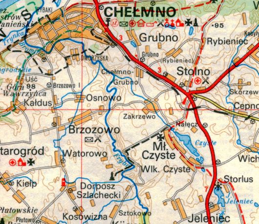 | jak trafić: | Miejscowość Małe Czyste znajduje się na zachód od drogi międzynarodowej nr 1 na odcinku Stolno -Chełmża. Do miejsca pamięci doprowadzi nas czarny szlak "Ofiar 1939 r." rozpoczynający się na skrzyżowaniu z drogą odbijającą na Stolno, obok drogowskazu i przydrożnego krzyża. (zobacz na mapie). Po pokonaniu 3,2 km szlaku, w grupie polnych drzew, znajdziemy symboliczną mogiłę z tablicą upamiętniającą śmierć ponad 800 Polaków. |